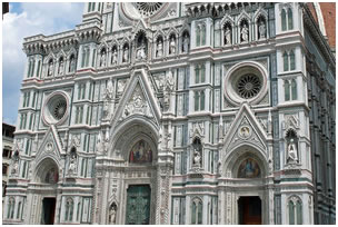 Флоренция отличается богатым разнообразием различных соборов и капелл, в результате чего и большое сосредоточие различных религиозных организаций в этом месте является немало важным. Флорентийский собор, или Дуомо Санта Мария дель Фьори, грандиозный купол которого является одним из узнаваемых силуэтов города, располагается на Пьяцца дель Дуомо. Строительство этого самого известного собора Флоренции началось еще в 1294 году и продлилось 81 год. В возведении собора принимали участие лучшие архитекторы своего времени: Джотто, Арнольфо ди Камбио, Андреа Пизано. Однако всемирную известность собору принес восьмигранный купол работы Филиппо Брунеллески 1420–1436 годов. Вершину купола на высоте более чем ста метров венчает шпиль с шаром, который поднимали туда посредством машины, созданной Микеланджело. Отделка фасада храма в белой, розовой и зеленой гамме закончилась только к 1887 году, когда Флоренция была столицей Италии. Знатокам и любителям искусства будет интересно увидеть новую и старую сакристии Дуомо, терракотовый люнет в бело-голубых тонах работы Луки делла Роббиа, бронзовый реликварий работы Лоренцо Гиберти, в котором хранятся мощи первого епископа Флоренции — канонизированного Зенобия. Размеры Дуомо поражают воображение: порядка ста пятидесяти метров в длину и девяноста метров в ширину. Сегодня Санта Мария дель Фьори является четвертым по величине собором мира, уступая только Собору Святого Петра в Ватикане, Собору Святого Павла в Лондоне и Миланскому Дуомо.